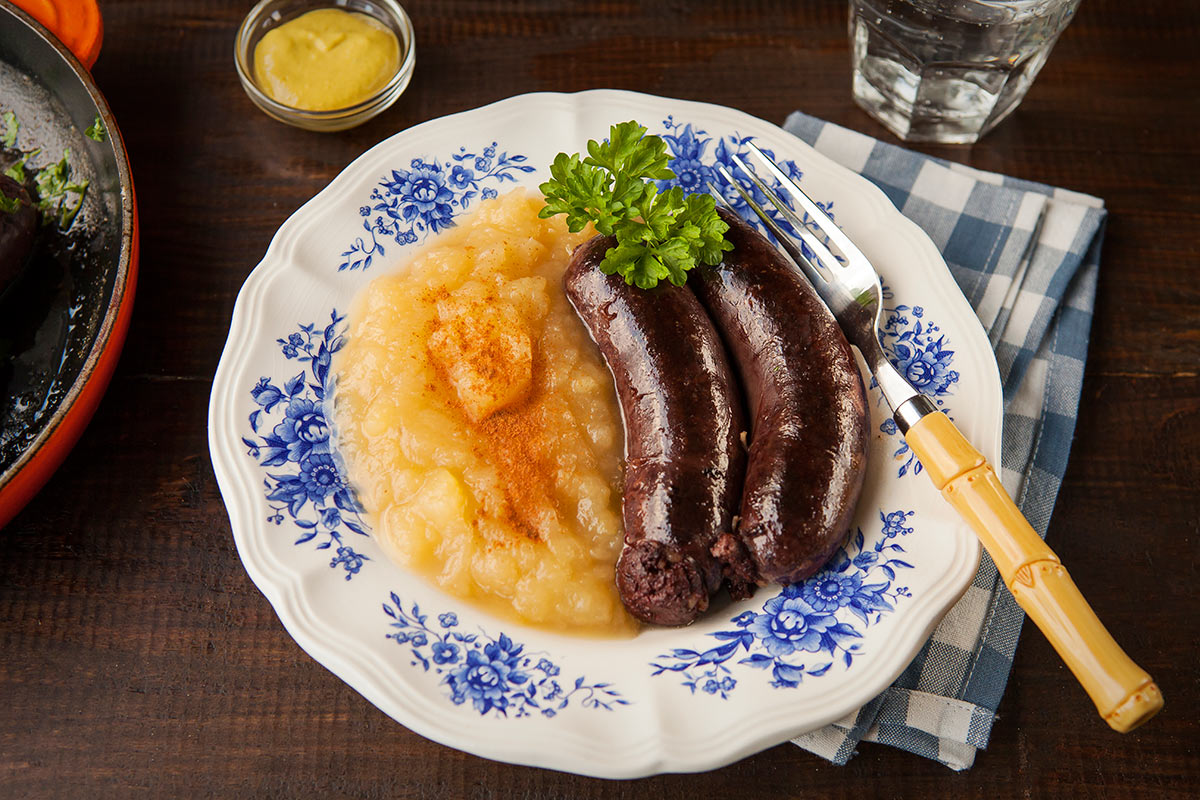Bloedworst met appelmoes als middagmaal