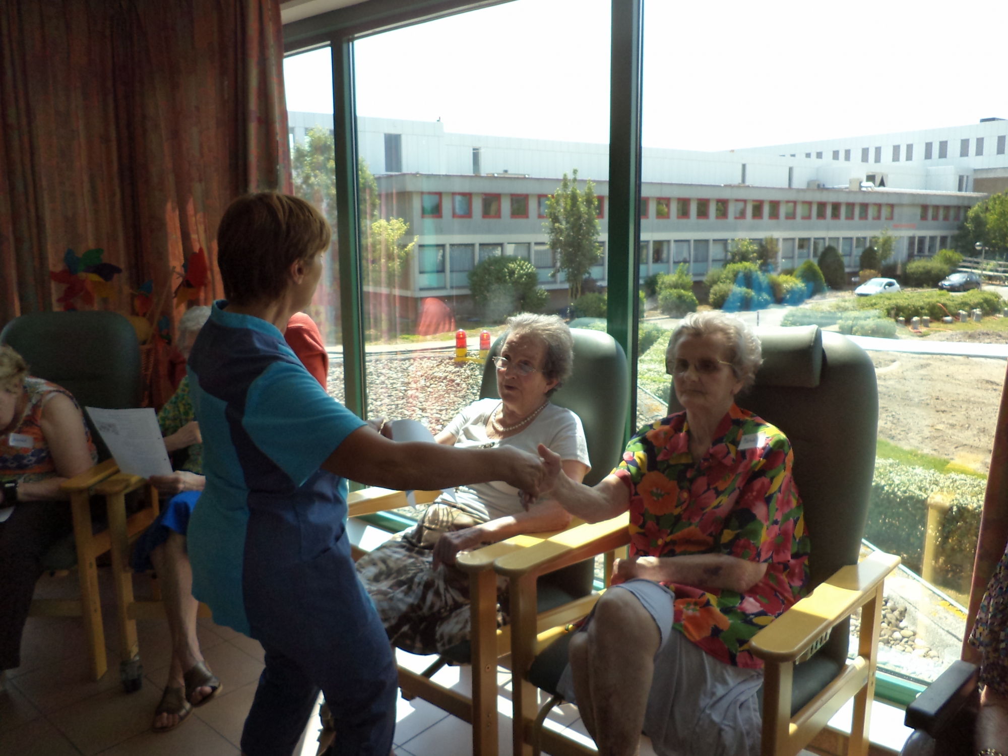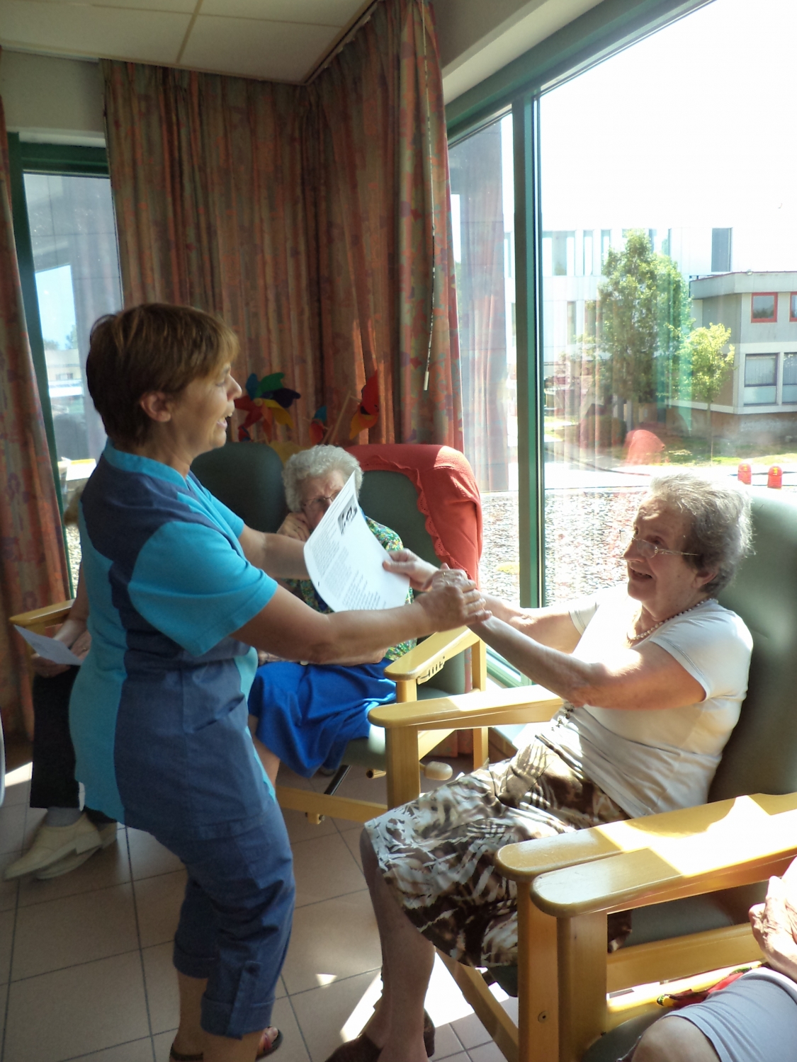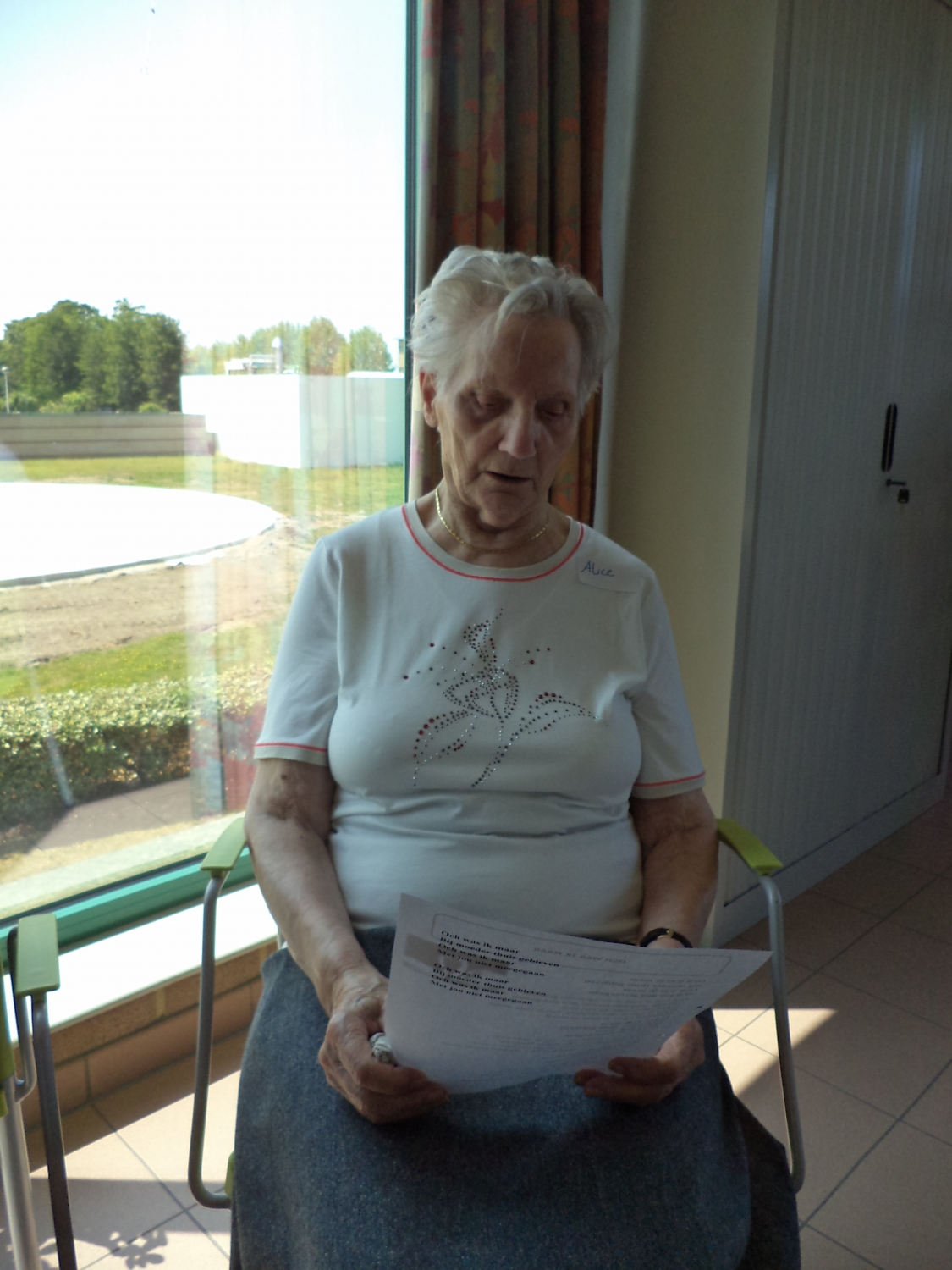 De bewoners genoten met volle teugen en zongen mee uit volle borst met een 10-tal klassiekers waaronder: kleine café aan de haven, twee ogen zo blauw, daar bij die molen, tulpen uit Amsterdam,... Het werd een gezellige namiddag; voor herhaling vatbaar!