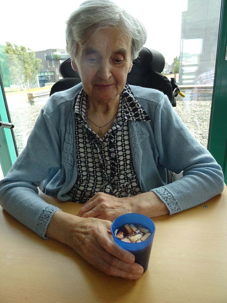Bewoners van het gelijkvloers en de eerste verdieping komen maandelijks samen om een gezellige, muzikale namiddag te beleven.