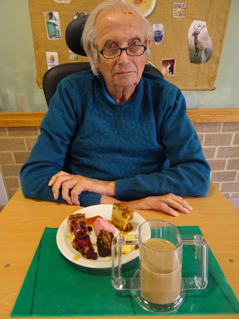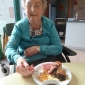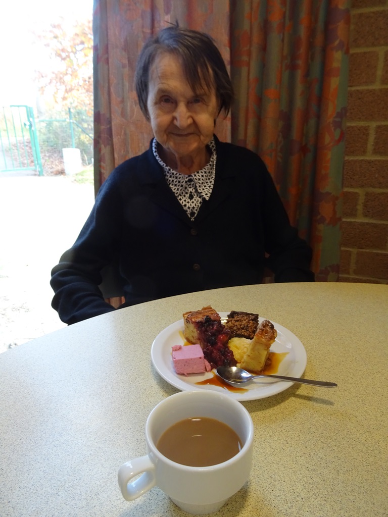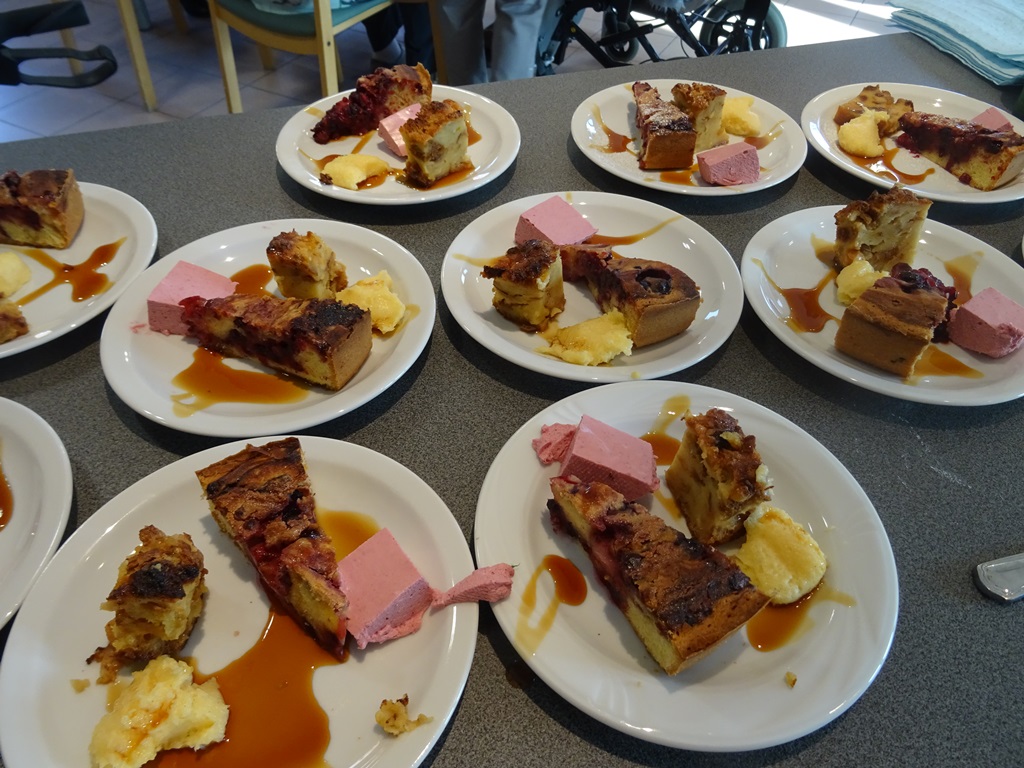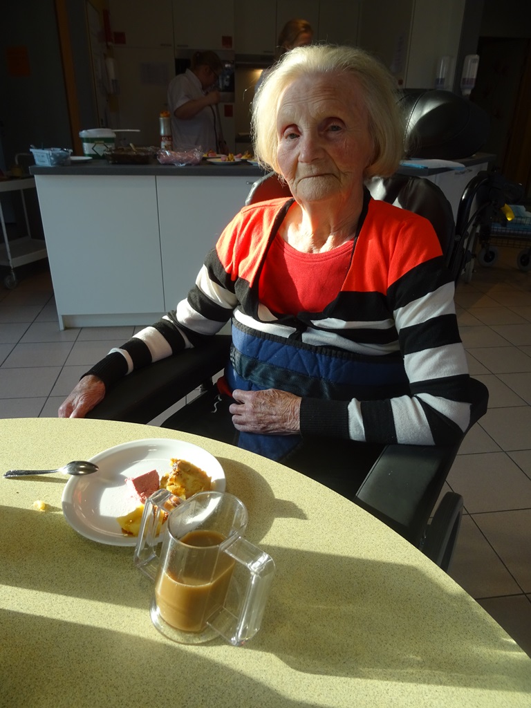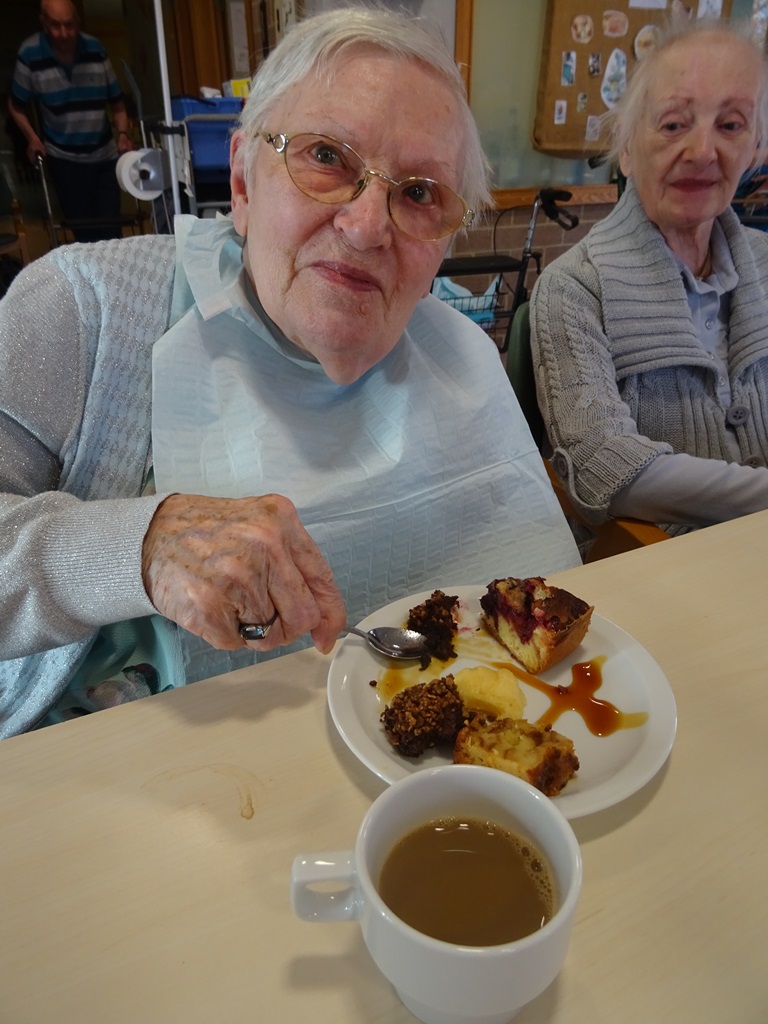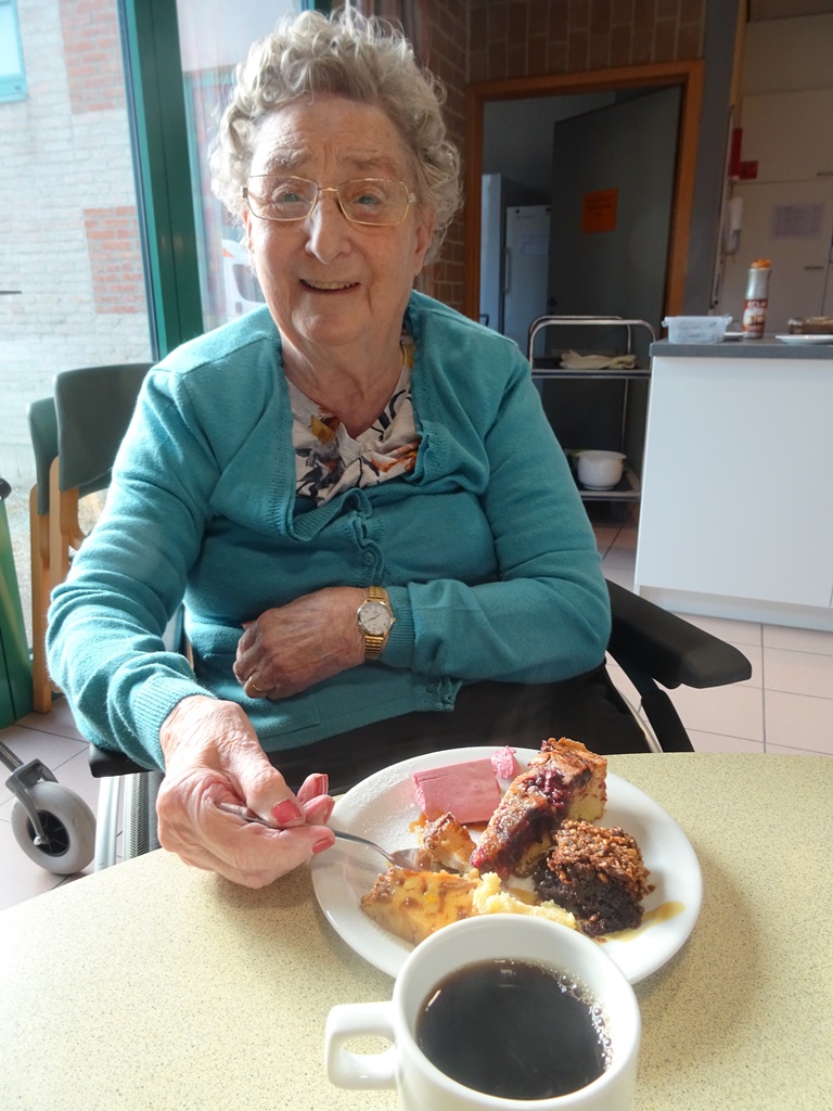 De bewoners van boven mogen naar de dagzaal komen vanaf 14u30 voor hun dessertbord!