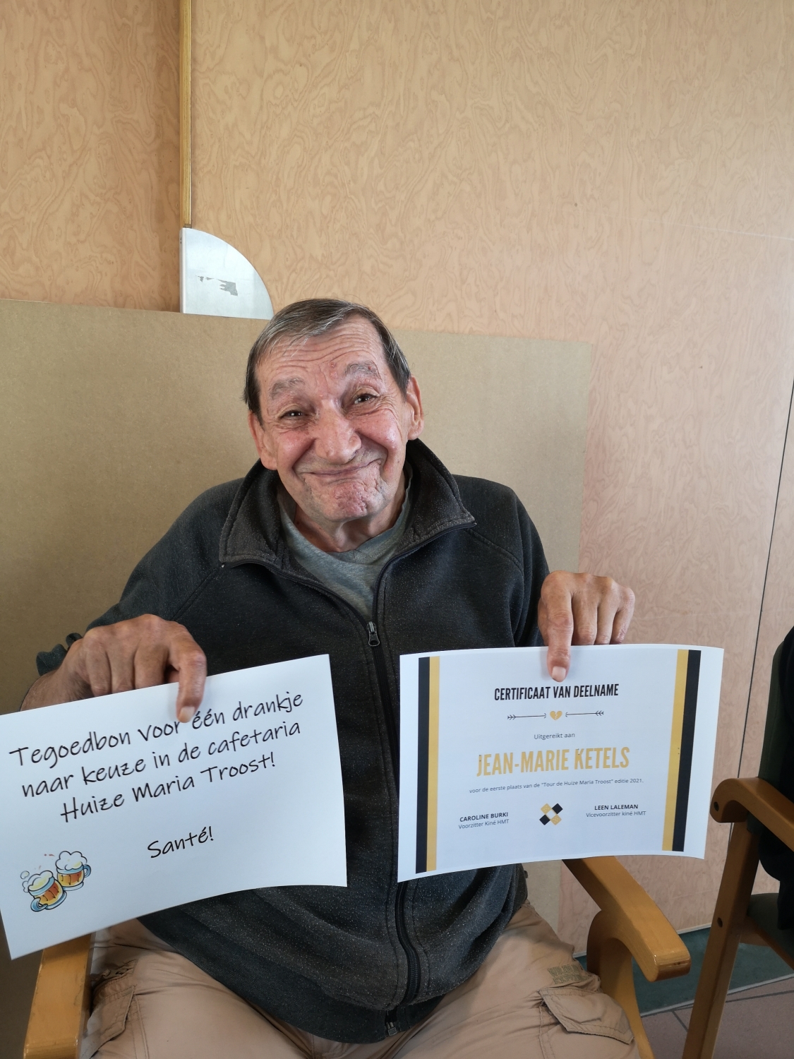 In Huize Maria Troost maakten we vrijdag 16 juli de winnaar bekend van de 'Tour de Huize Maria Troost'. Podium: 1. Jean-Marie2. Micheline3. Ex aequo: Solange en MarieProficiat!