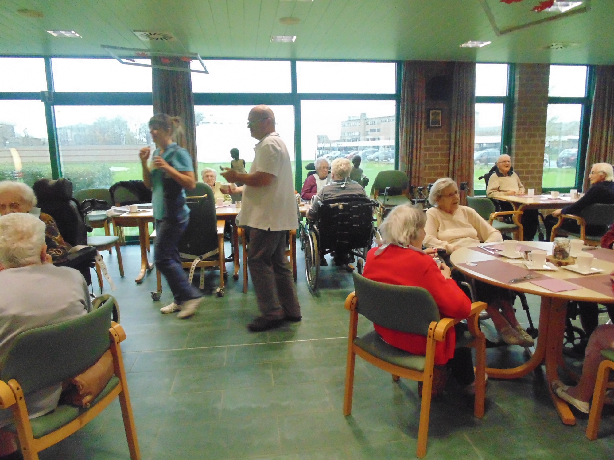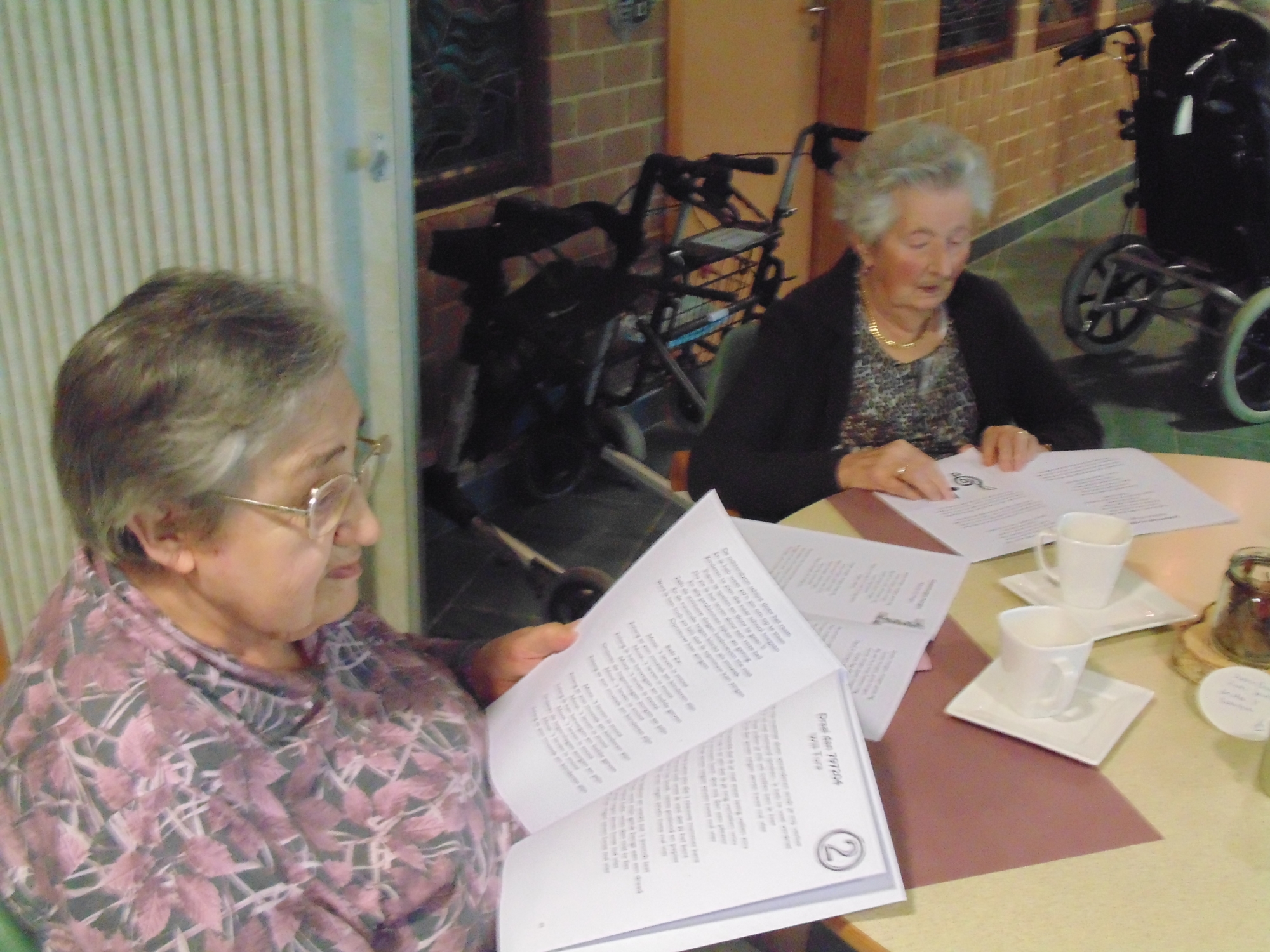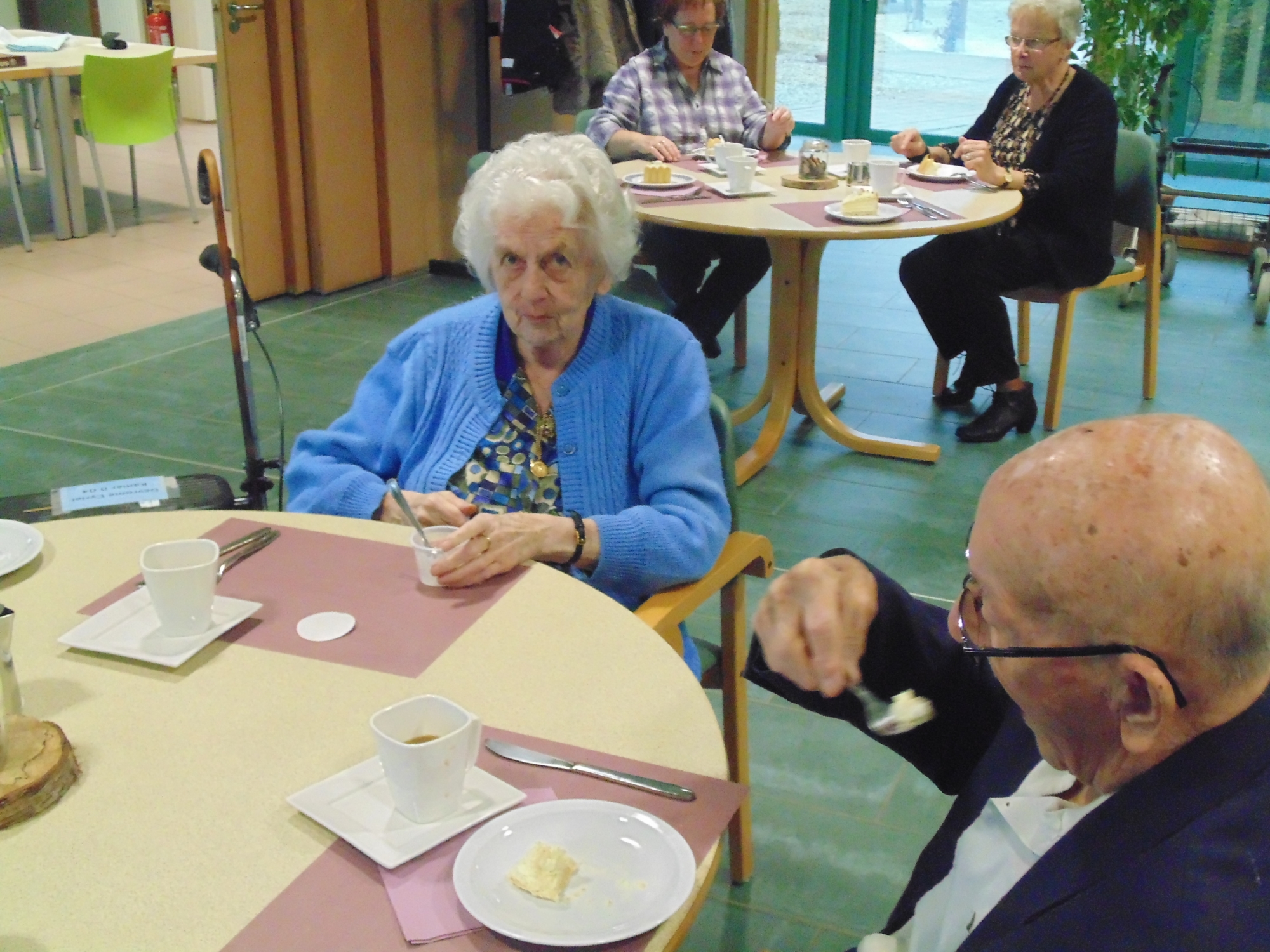De bewoners genoten eerst van Veurnse meringuetaart met koffie om daarna uit volle borst mee te kunnen zingen met onze top 20 van de jukebox!