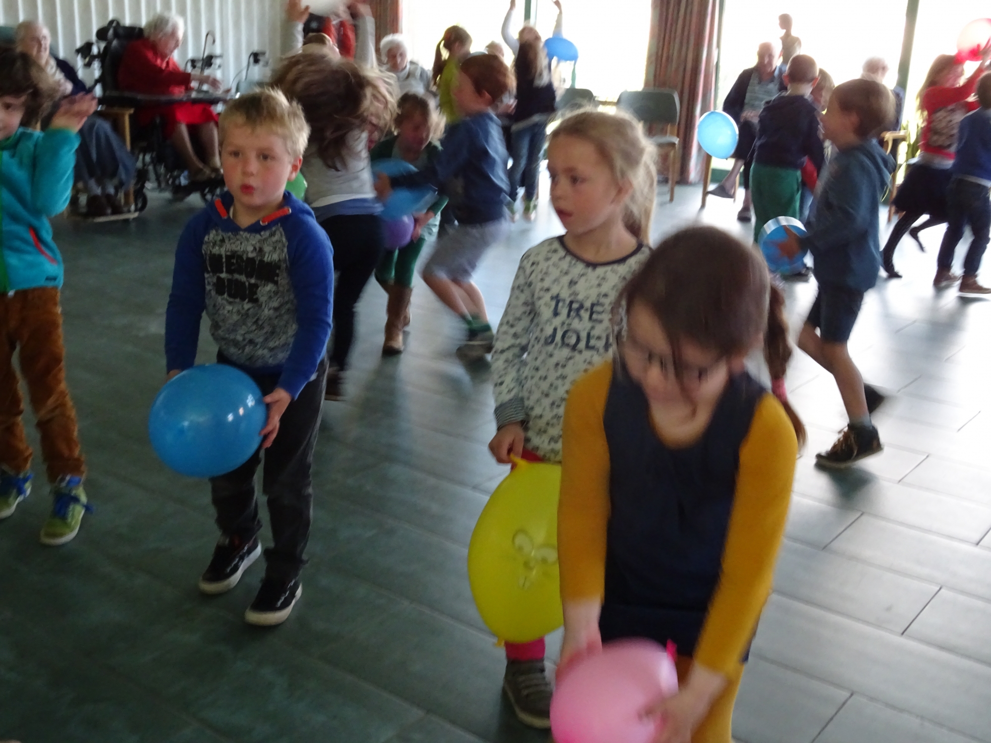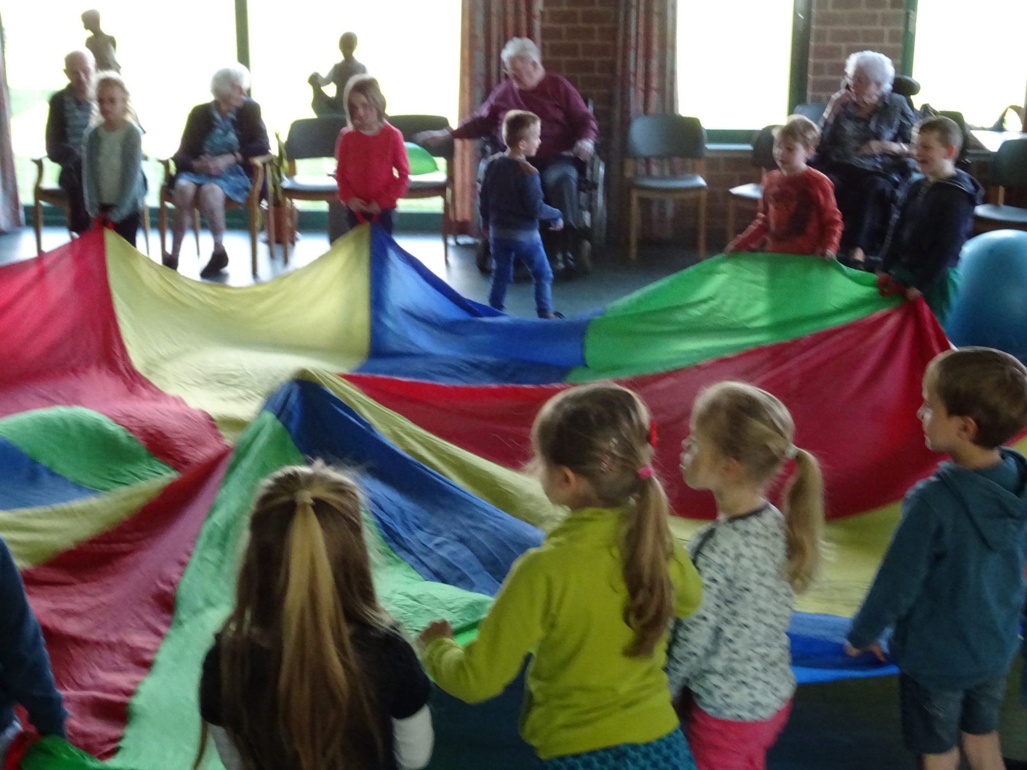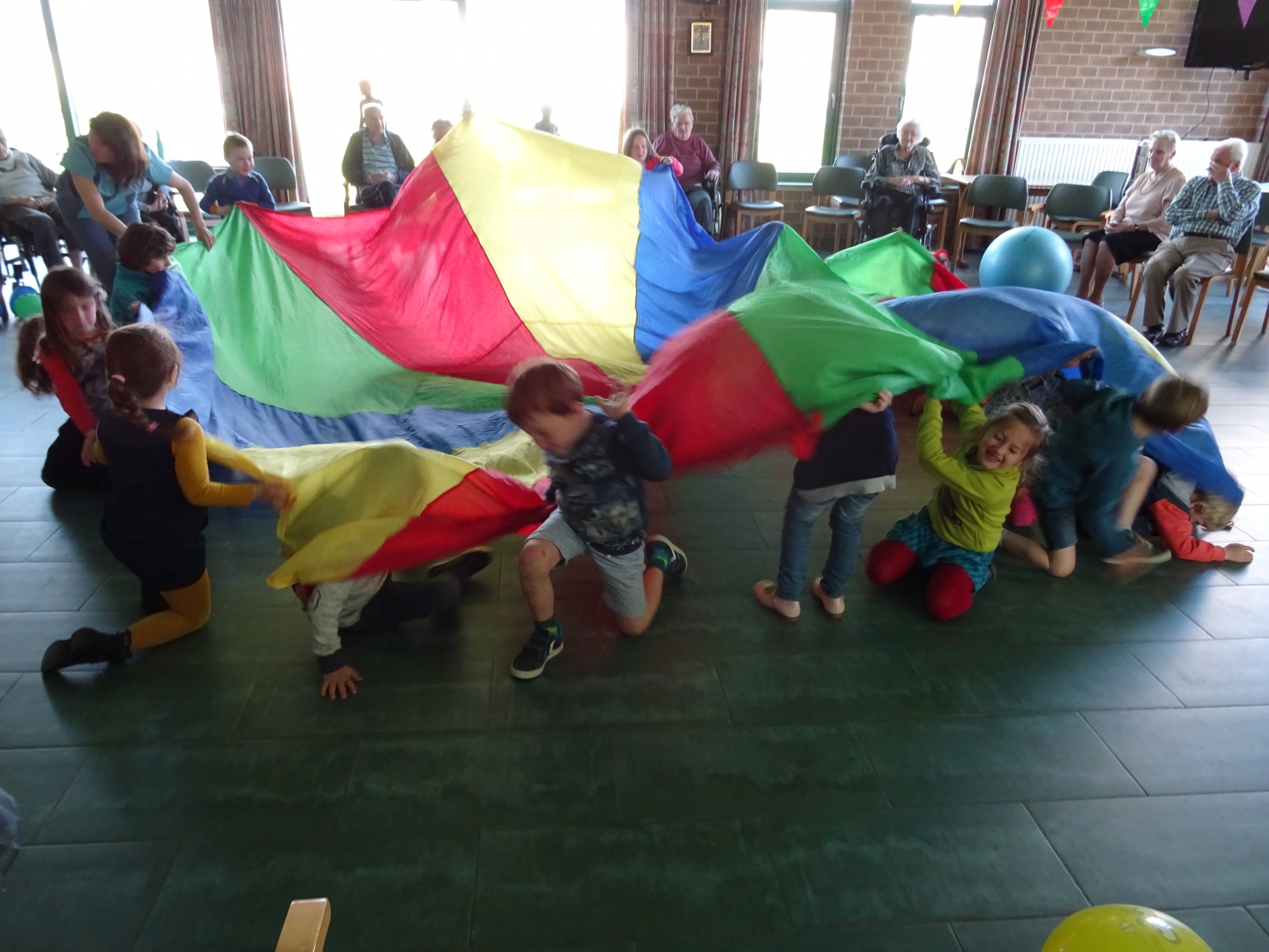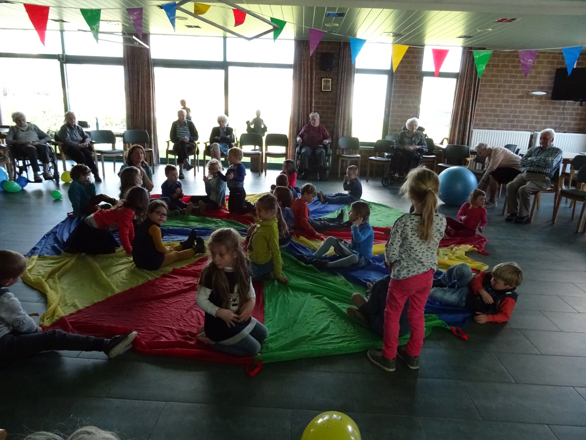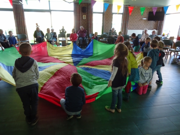 Naar aanleiding van de week van de valpreventie komen er een 20-tal kleutertjes van 't Regenboogje op bezoek om samen met onze ouderen groepsgymnastiek te doen.