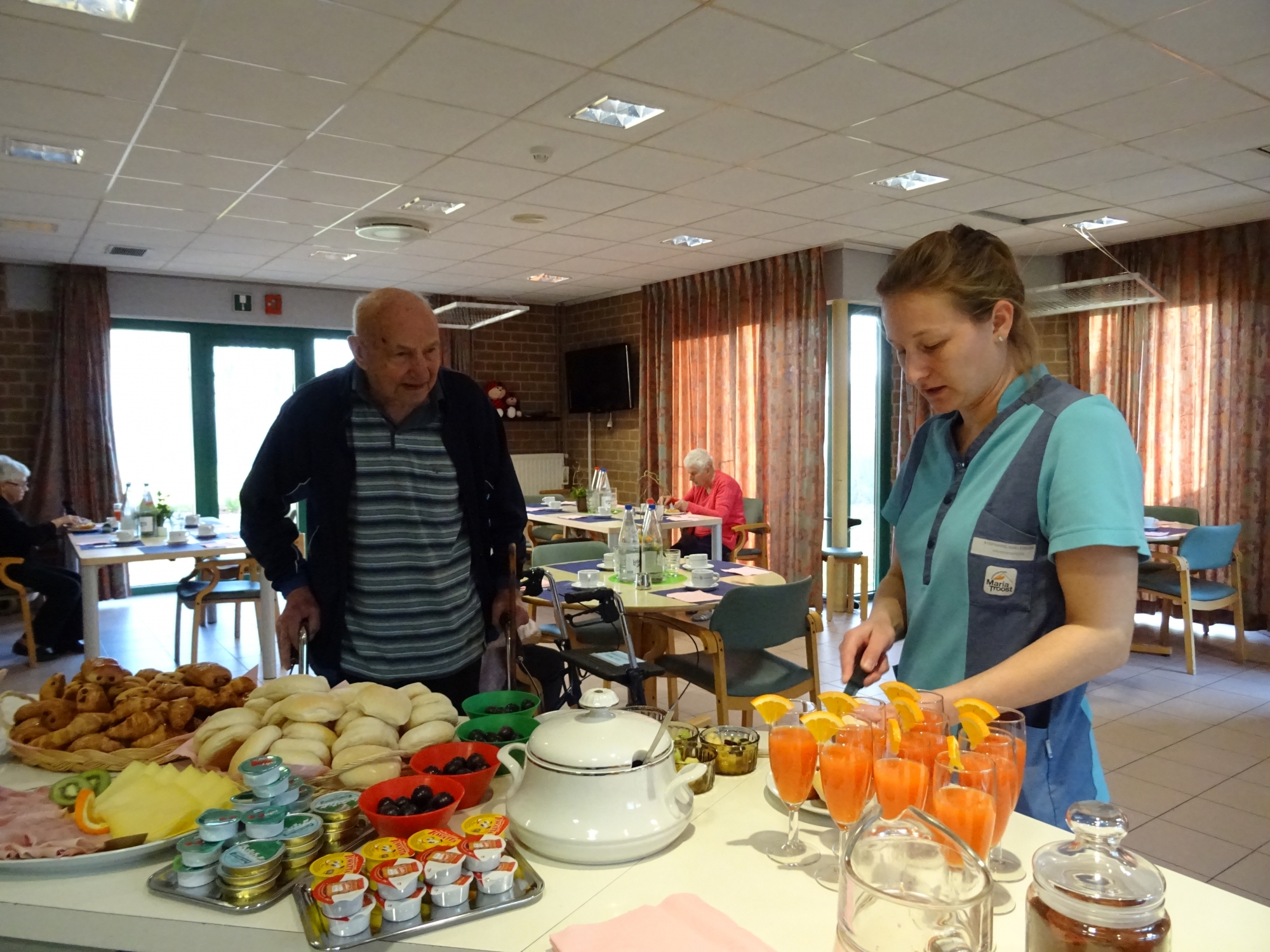 Vanaf 7u30 kunnen de bewoners van Huize Maria Troost aanschuiven aan het ontbijtbuffet in de dagzalen.