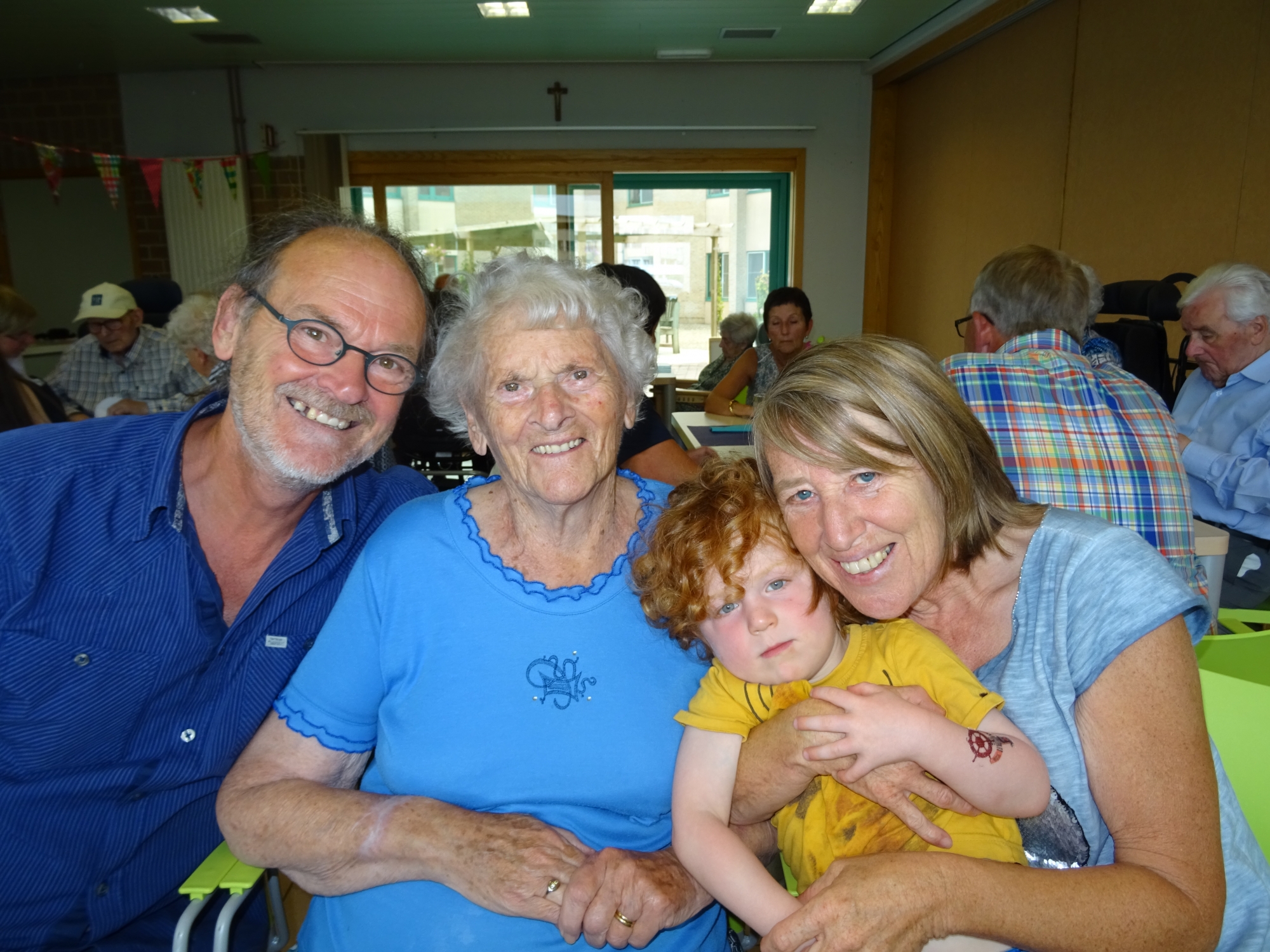Het verjaardagsfeest start om 14u en gaat door in het zaaltje naast de cafetaria. (Gelieve in te schrijven aan de hand van een brief die u bij de jarige bewoner in de kamer vindt.)