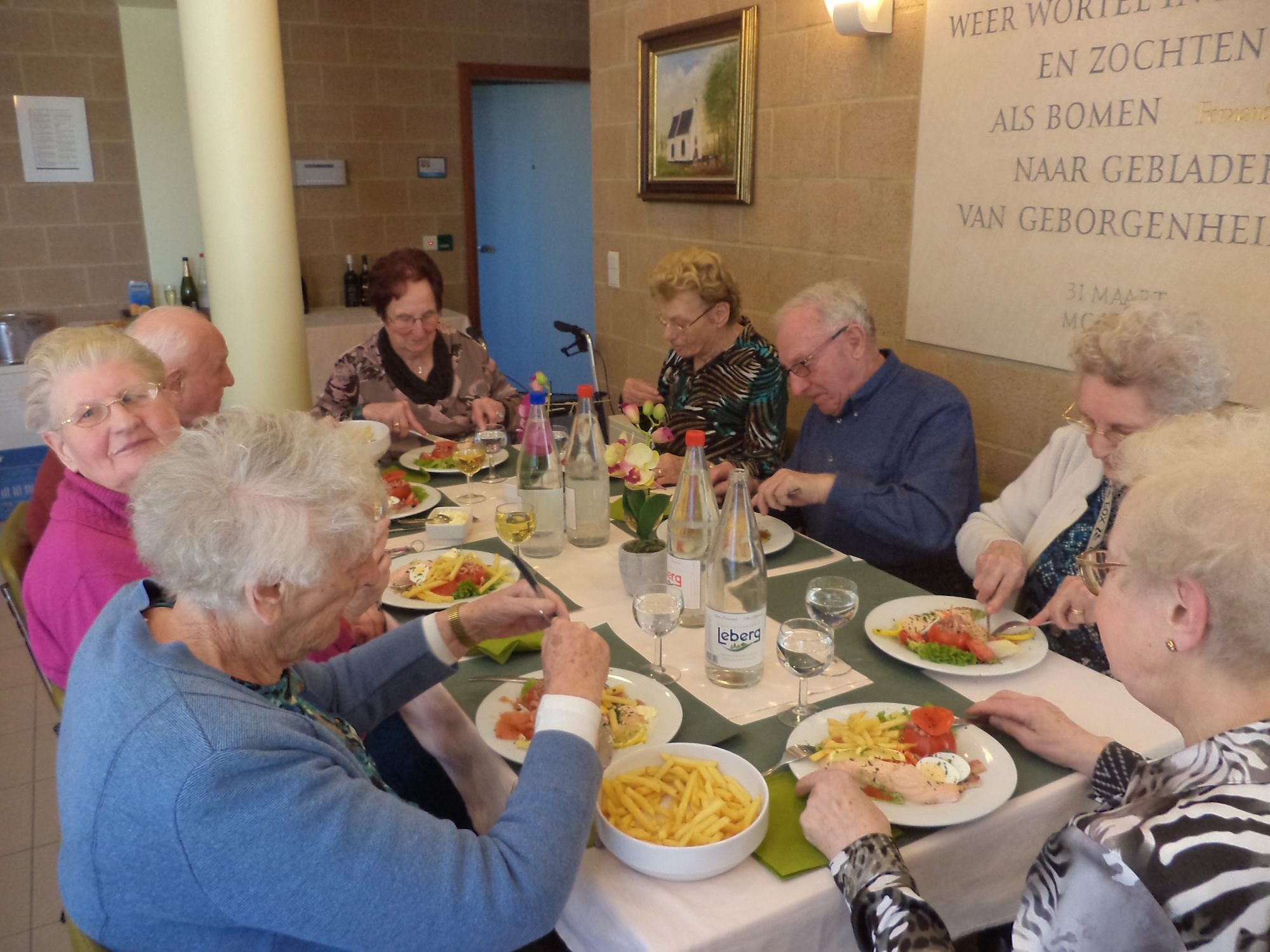 Op woensdag 1 april 2015 mocht het woonzorgnetwerk Maria Troost het 20-jarig bestaan vieren van de groep van assistentiewoningen “Suytcapelle” te Veurne. De 22 bewoners van de groep van assistentiewoningen (vroeger serviceflats genaamd) werden op die dag uitgenodigd door de algemeen directeur van Maria Troost dhr. Declerck Koen en werden getrakteerd op een aperitief gevolgd door een koude visschotel met frietjes. Om het heerlijke diner wat te laten zakken, werden de bewoners vermaakt met een muzikale activiteit. Als afsluiter van de feestelijke dag kregen de bewoners nog een stukje Veurnse meringuetaart met koffie en versnaperingen. Op naar de volgende 20 jaar!