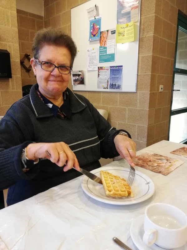 Daarna kunnen ze genieten van de wafels samen met een kopje koffie.