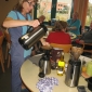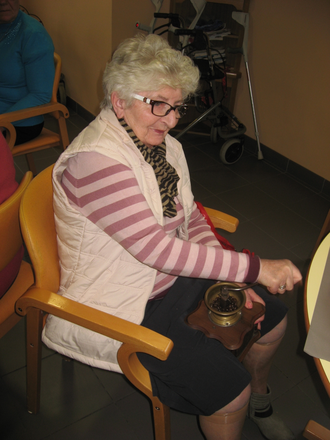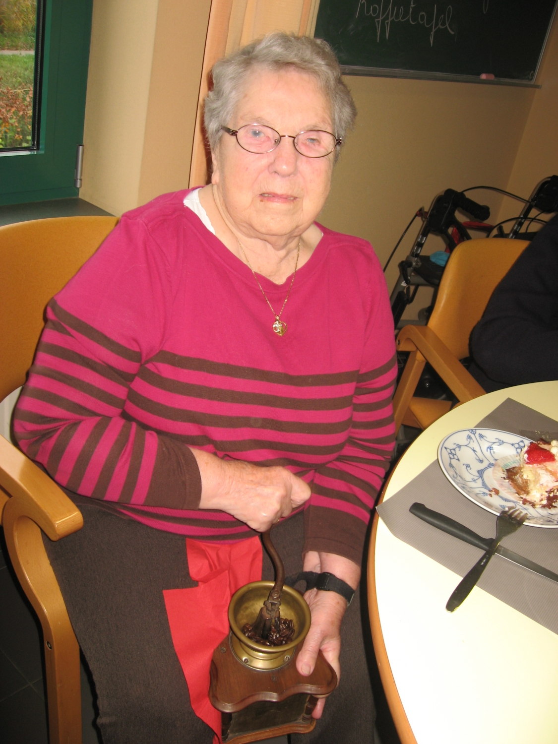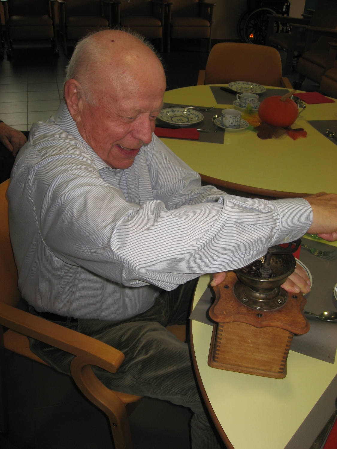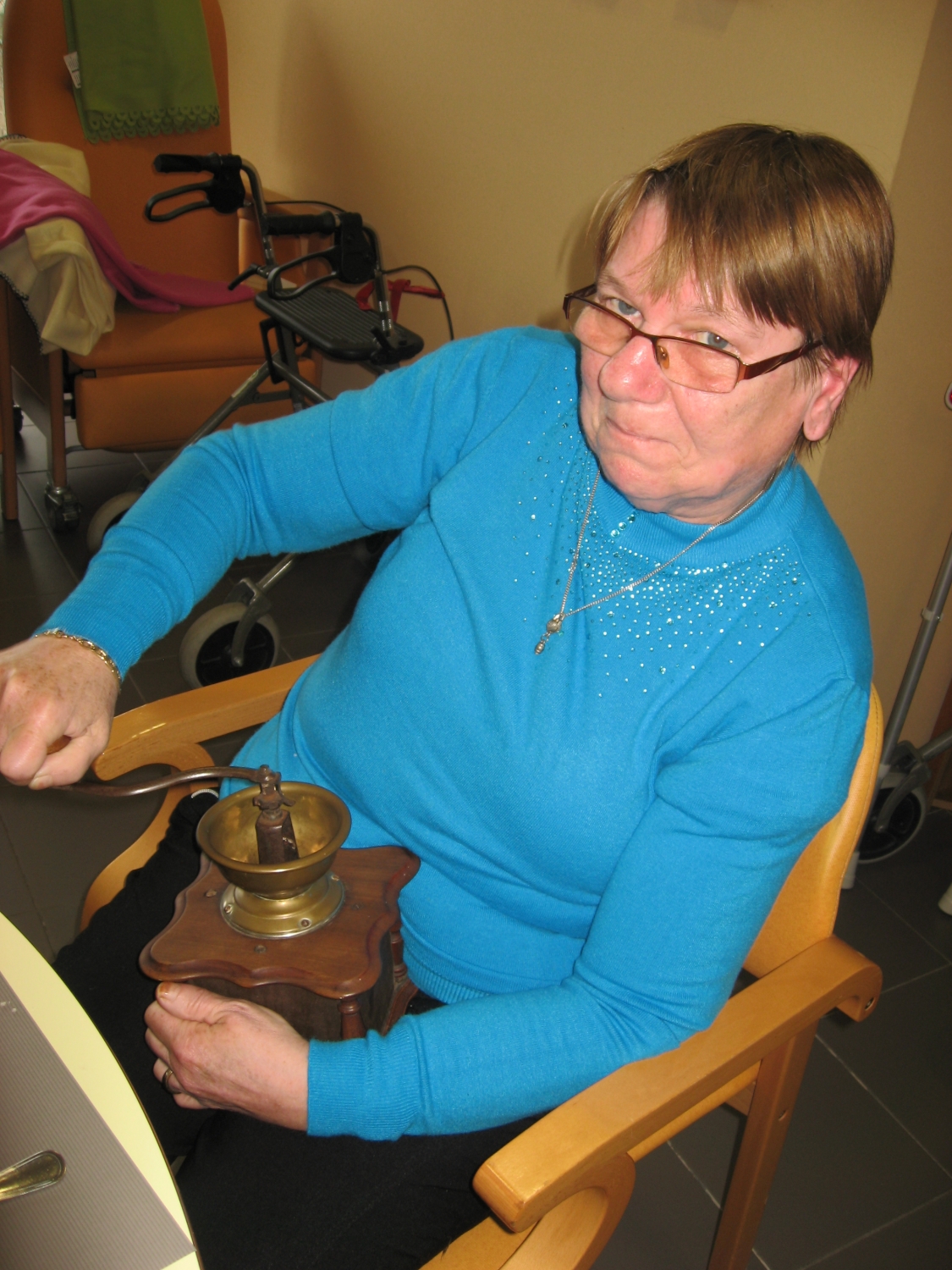 Voor de koffietafel op 17 november konden alle bezoekers van Tagaste hun eigen koffie malen op de ouderwetse manier!